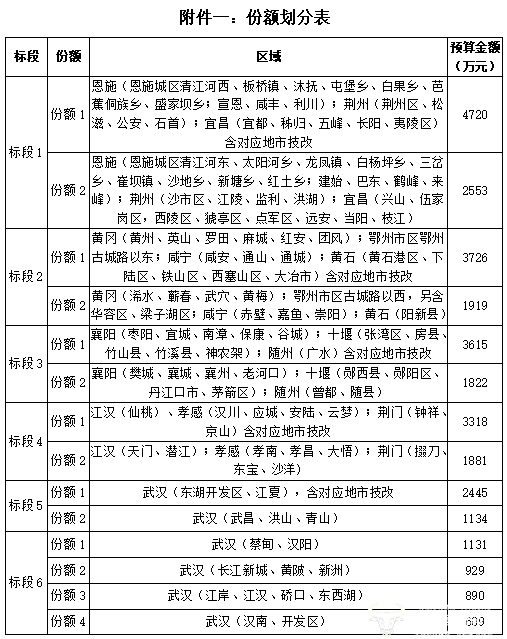 標(biāo)段5劃分為2個(gè)份額,預(yù)算分別為2445萬(wàn)元、1134萬(wàn)元;
