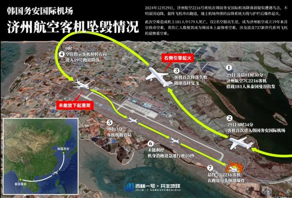12月29日上午,被熏吉林一號(hào)寬幅02B04星過境韓國(guó)務(wù)安,衛(wèi)星拍攝到了飛機(jī)失事后真實(shí)畫面。直擊