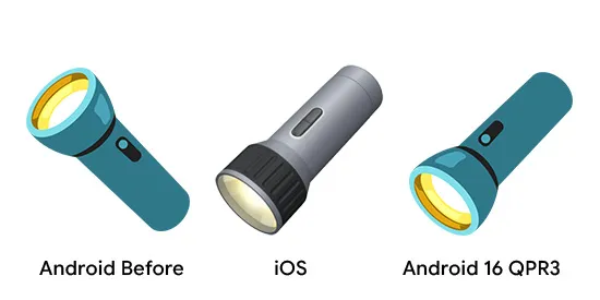 物品方面,本次更新還調(diào)整“手電筒”和“揚(yáng)聲器”的設(shè)計(jì)。最有趣的細(xì)節(jié)在于“培根”(Bacon)表情:谷歌特意在原有一片培根的基礎(chǔ)上增加了第二片,這一改動(dòng)使得該圖標(biāo)在視覺上與蘋果 iOS 的雙片培根設(shè)計(jì)完全一致。