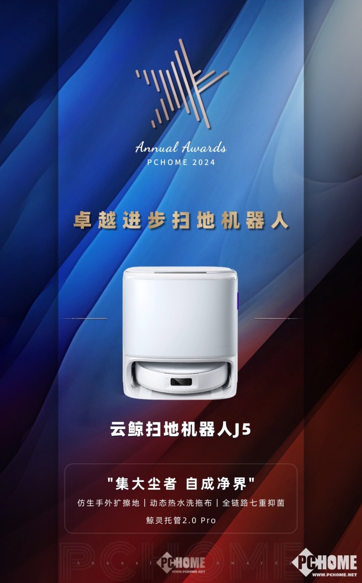 在本次評選活動中,云鯨越進云鯨掃地機器人J5獲得PChome 2024卓越進步掃地機器人獎項。掃地