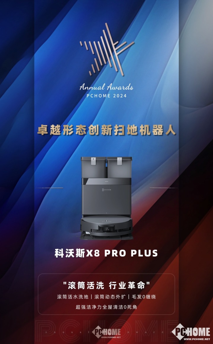 在本次評選活動中,科沃科沃斯X8 Pro Plus獲得PChome 2024卓越形態(tài)創(chuàng)新掃地機(jī)器人獎項。斯X掃地