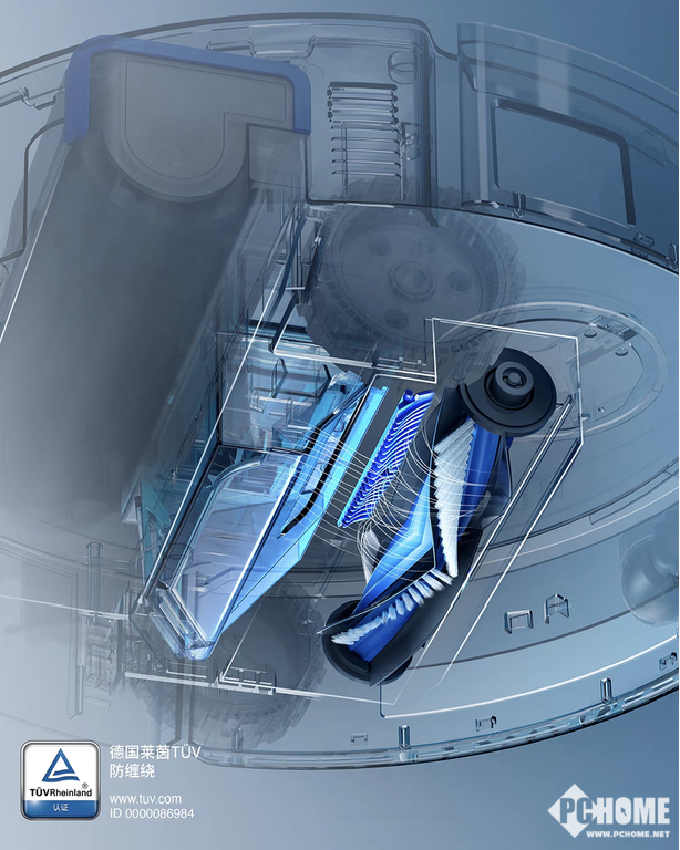 針對于地面防纏繞,科沃斯X8 Pro系列采用了V型滾刷+氣旋+梳齒吸入的方式,配合13000Pa的大吸力,實現(xiàn)地面毛發(fā)零纏繞。