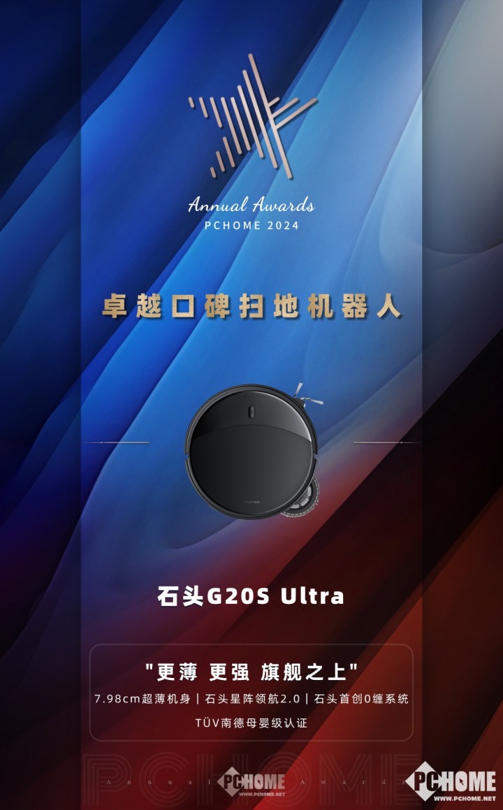 在本次評(píng)選活動(dòng)中,得P地機(jī)石頭G20S Ultra掃地機(jī)器人獲得PChome 2024卓越口碑掃地機(jī)器人獎(jiǎng)項(xiàng)。越口